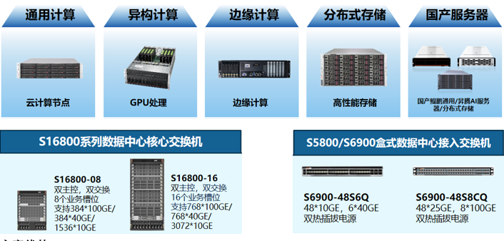 烽火數(shù)據(jù)中心IT基礎(chǔ)設(shè)施解決方案主要涵蓋了服務(wù)器(x86架構(gòu)兩路/四路服務(wù)器、GPU服務(wù)器)、數(shù)據(jù)中心級(jí)交換機(jī)(數(shù)據(jù)中心核心交換機(jī)、數(shù)據(jù)中心接入交換機(jī)),并提供智能化的數(shù)據(jù)中心運(yùn)維管理平臺(tái),滿足云計(jì)算、大數(shù)據(jù)、NFV等多元業(yè)務(wù)場(chǎng)景。