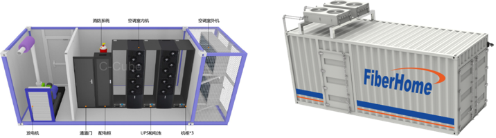 烽火集裝箱式機房解決方案,融合了配電、UPS、制冷、機柜、布線、照明、安防、監(jiān)控為一體。主要是解耦數(shù)據(jù)中心基礎設施和土建場景,將相關工程進行了產(chǎn)品化,所有設備工廠預制化,實現(xiàn)業(yè)務上線的快速響應。即到即用,方案即產(chǎn)品,產(chǎn)品即方案。