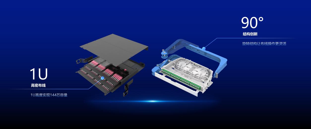 一是采用自研OM5光纖以及烽火自研結(jié)構(gòu)光纜,傳輸帶寬更高、損耗更低,適合在算力資源集中的高密度數(shù)據(jù)中心部署;二是工藝優(yōu)化,實(shí)現(xiàn)了插芯對(duì)接精度提升至2.0μm、插拔次數(shù)提升至500次、連接器長度優(yōu)化至37mm;三是在架體層面,實(shí)現(xiàn)了1U高度144芯高密布線、架體材質(zhì)場(chǎng)景定制化。此外對(duì)標(biāo)歐美主流廠家產(chǎn)品,烽火突破旋轉(zhuǎn)鉸鏈專利限制,自研90度旋轉(zhuǎn)的子框,且采用對(duì)稱可現(xiàn)場(chǎng)左右出纖的專利結(jié)構(gòu),極大的提升了機(jī)房布線的操作空間,結(jié)構(gòu)更靈活。