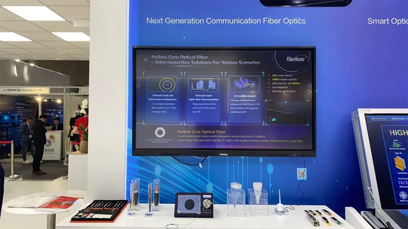 烽火通信是全球光纖光纜主要供應(yīng)商,近年光纜出貨量均位列全球前二,傳統(tǒng)光纖年產(chǎn)能在6000萬(wàn)芯以上,具備特殊光纜定制開(kāi)發(fā)能力和全系列傳統(tǒng)光纖產(chǎn)品研制能力。本次展出的前沿光纖產(chǎn)品中,19芯單模光纖已實(shí)現(xiàn)單根光纖3.61Pbit/s的系統(tǒng)傳輸;7芯單模光纖已應(yīng)用在中國(guó)粵港澳大灣區(qū)超級(jí)光網(wǎng)絡(luò)工程;正在研制的空芯光纖相比常規(guī)光纖可提供1.5~5倍傳輸容量、時(shí)延降低31%,可實(shí)現(xiàn)更高傳輸速率、更大帶寬、更好網(wǎng)絡(luò)質(zhì)量、更強(qiáng)安全性、更長(zhǎng)傳輸距離。
