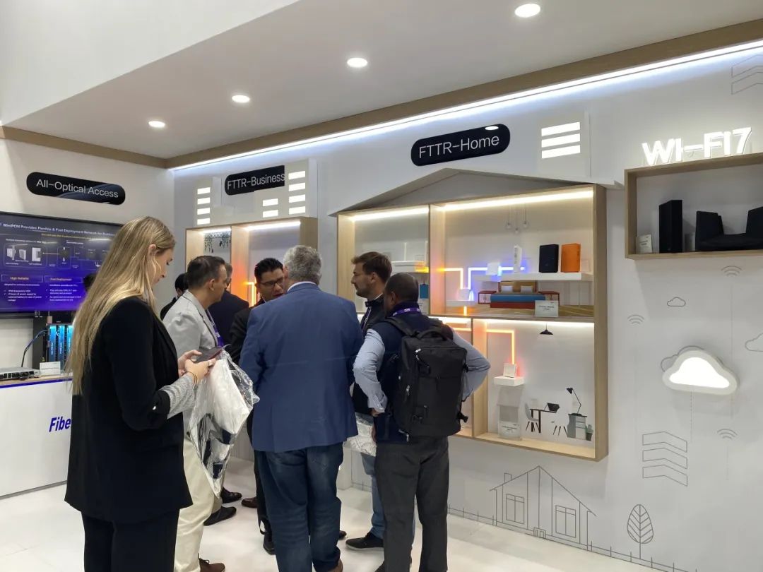 烽火通信持續(xù)推動(dòng)10G PON向50G PON、Wi-Fi6向Wi-Fi7不斷演進(jìn),為家庭、企業(yè)、園區(qū)等多場(chǎng)景提供超千兆乃至萬(wàn)兆接入能力。本次展會(huì)重點(diǎn)展示了基于FTTR、PON、POL技術(shù)打造的產(chǎn)品和綜合解決方案,為客戶全方位構(gòu)建面向萬(wàn)兆時(shí)代的全光連接。其中,業(yè)界領(lǐng)先的三模50G PON OLT系統(tǒng)支持GPON、10G PON、50G PON三模共存,可實(shí)現(xiàn)網(wǎng)絡(luò)平滑升級(jí),節(jié)省網(wǎng)絡(luò)部署成本。MiniPON方案結(jié)合室外柜+小型OLT+Easyconns防水預(yù)連接,幫助偏遠(yuǎn)鄉(xiāng)村地區(qū)快速實(shí)現(xiàn)光纖寬帶網(wǎng)絡(luò)靈活覆蓋,讓數(shù)字技術(shù)造福更多人。
