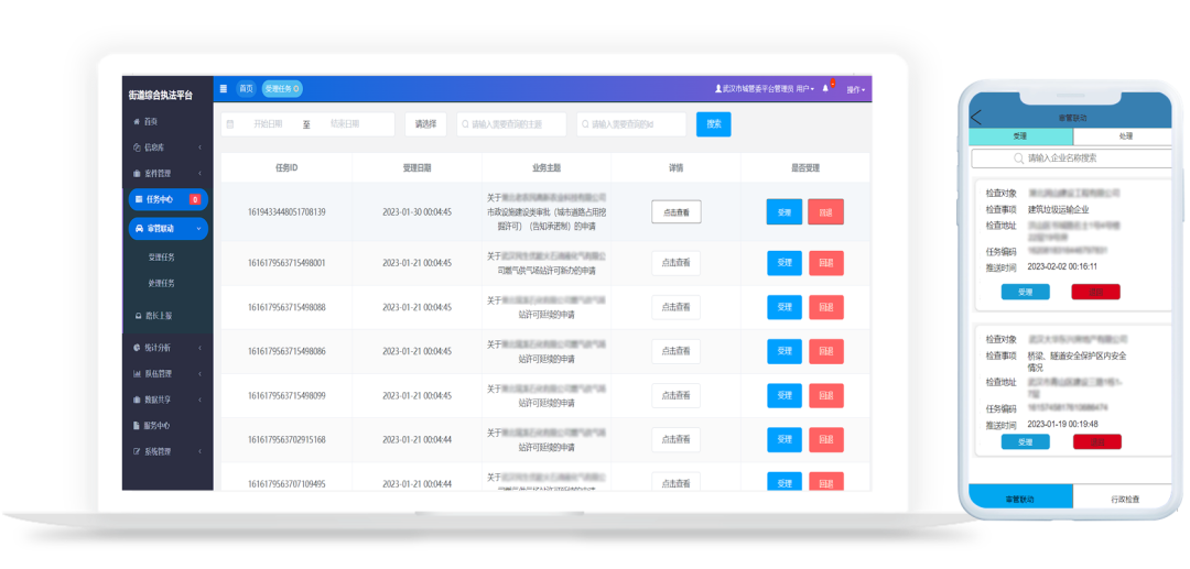 市級審管聯(lián)動系統(tǒng)對接街道綜合執(zhí)法系統(tǒng),實現(xiàn)區(qū)、街審管聯(lián)動