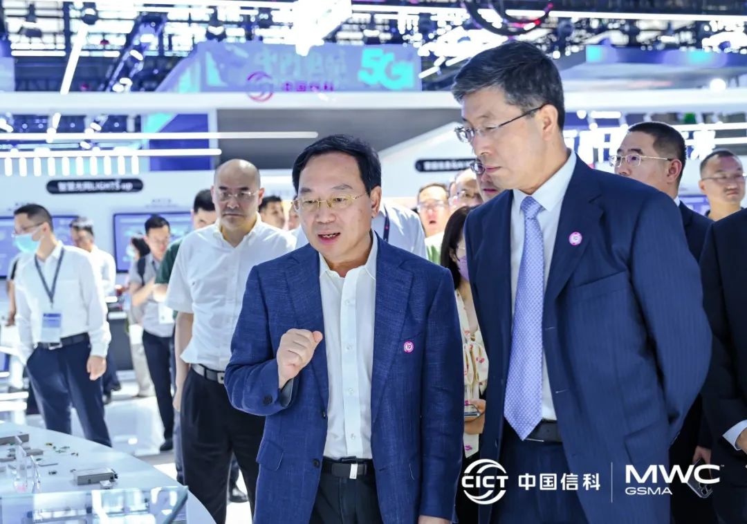 開(kāi)展首日,工業(yè)和信息化部總工趙志國(guó)一行蒞臨中國(guó)信科展臺(tái),聽(tīng)取了中國(guó)信科副總經(jīng)理、總工程師陳山枝關(guān)于集團(tuán)布局6G預(yù)研方面取得的階段性進(jìn)展和成果介紹,積極支撐我國(guó)實(shí)現(xiàn)6G技術(shù)引領(lǐng)的戰(zhàn)略目標(biāo),了解了智慧光網(wǎng)技術(shù)創(chuàng)新中400G 超長(zhǎng)距現(xiàn)網(wǎng)應(yīng)用取得的技術(shù)突破,以及智惠算力領(lǐng)域的全棧式液冷解決方案和數(shù)據(jù)中心內(nèi)部互聯(lián)的1.6T OSFP-XD DR8高速光模塊產(chǎn)品。