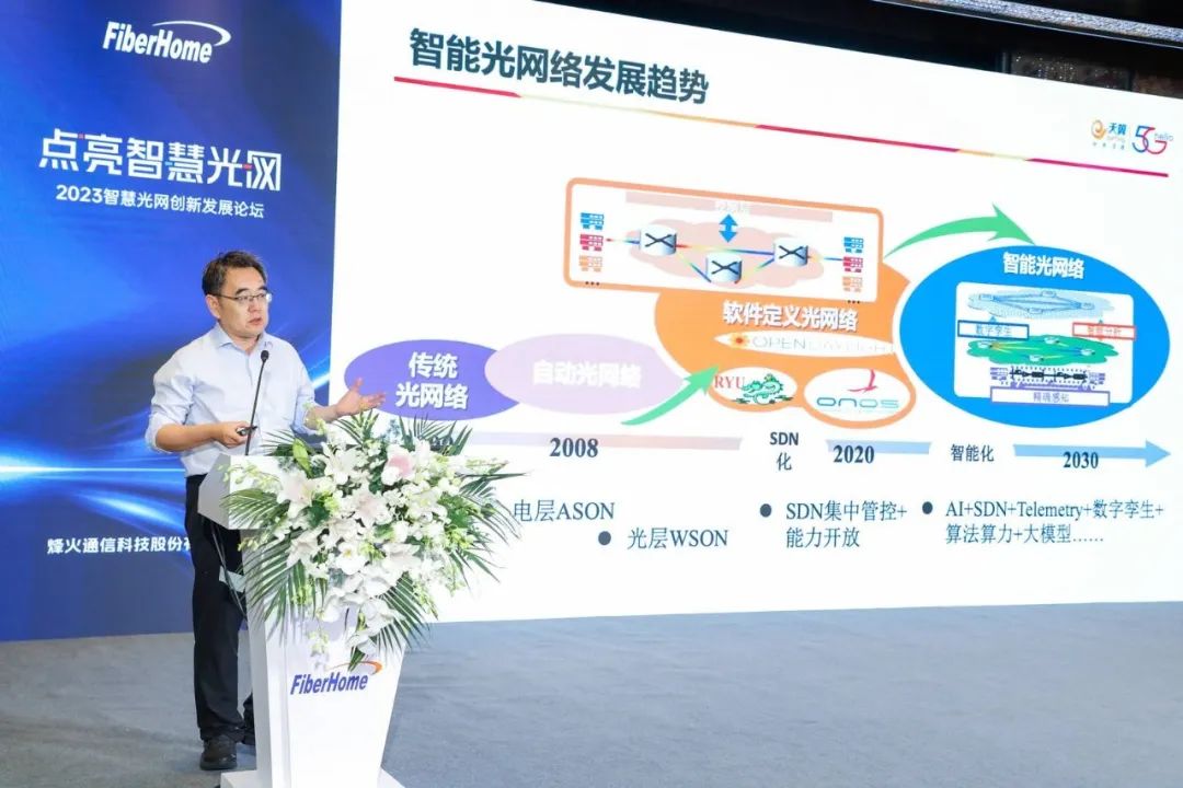 中國信科集團副總經(jīng)理羅昆初在致辭中提到,加快打造全球的數(shù)字基礎(chǔ)設(shè)施,將為加快建設(shè)網(wǎng)絡(luò)強國、數(shù)字中國提供戰(zhàn)略支撐,從而更好地發(fā)揮數(shù)字時代推進中國式現(xiàn)代化的重要引擎作用。烽火通信作為中央國有企業(yè),不忘科技自立自強初心,牢記建設(shè)網(wǎng)絡(luò)強國、數(shù)字中國的發(fā)展使命,面向數(shù)字中國建設(shè)2025、2035發(fā)展目標,在數(shù)字基礎(chǔ)設(shè)施方面進一步強化系統(tǒng)謀劃、整體部署,不斷切實增強企業(yè)競爭力、創(chuàng)新力,夯實數(shù)字中國底座。同時作為光通信發(fā)源地,持續(xù)致力于推動光通信在傳輸容量、傳輸距離、建設(shè)成本、賦能行業(yè)應(yīng)用方面不斷創(chuàng)新,并持續(xù)將光通信向智能化、智慧化推進。自2019年烽火通信首次提出智慧光網(wǎng)概念,至今已持續(xù)創(chuàng)新到第五個年頭,今天,烽火通信將再次發(fā)布智慧光網(wǎng)全新升級戰(zhàn)略,愿攜手業(yè)界同仁,推動光網(wǎng)向著數(shù)字化、智能化方向持續(xù)演進,用更快、更優(yōu)的連接賦能經(jīng)濟社會高質(zhì)量發(fā)展。