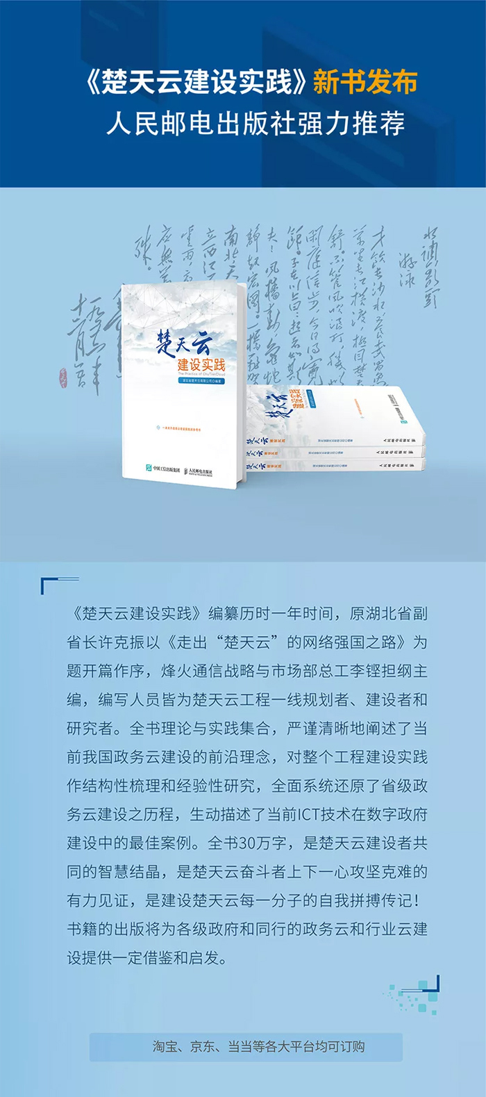 盛夏7月,楚天云平臺(tái)上線兩周年之際,由人民郵電出版社出版,烽火通信、湖北省楚天云有限公司編著的《楚天云建設(shè)實(shí)踐》一書(shū)正式面世發(fā)行。