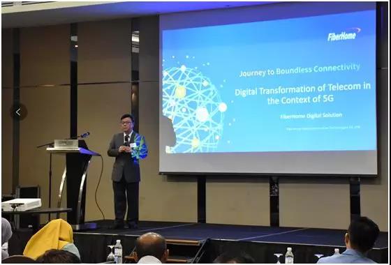第一場是馬來西亞電信專場,來自馬來西亞電信以及TNB、Fibrecomn、Fiberail等眾多客戶應(yīng)邀到場?;顒?dòng)開始,烽火首先簡單回顧了與馬來西亞電信的長期戰(zhàn)略合作伙伴之路,針對目前5G和數(shù)字化轉(zhuǎn)型的建設(shè)需求,提出雙方深入合作,在5G時(shí)代一路同行的美好愿景。隨后,烽火通信戰(zhàn)略與市場部總工程師李鏗發(fā)表了開場主題演講,詳細(xì)分析了在數(shù)字化市場的發(fā)展洪流中,運(yùn)營商應(yīng)如何應(yīng)對發(fā)展,穩(wěn)步前進(jìn)。