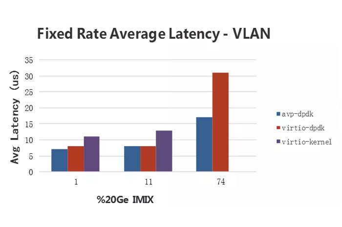 在10Gbps流量下,AVP在256字節(jié)短包時(shí)較vhost-user提高1/3吞吐量,達(dá)到線性吞吐;混合包平均時(shí)延15us,遠(yuǎn)低于vhost-user的30us。