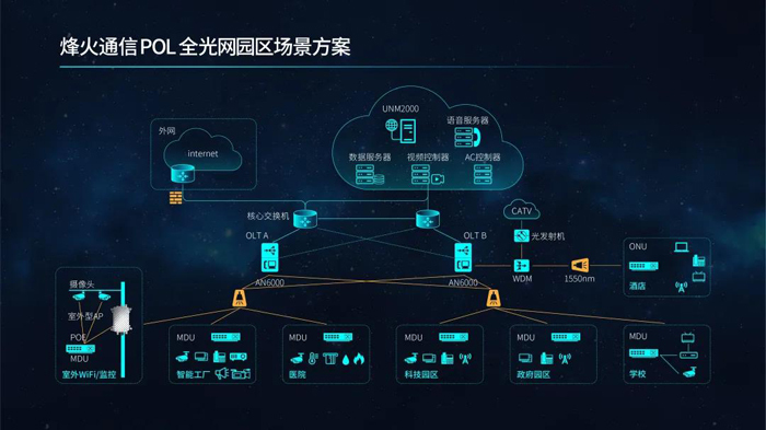 十多年來,隨著寬帶中國戰(zhàn)略的實(shí)施,國內(nèi)電信運(yùn)營商已普及了FTTH應(yīng)用,PON技術(shù)在家庭寬帶市場取得了巨大的成功,在產(chǎn)品成熟度、產(chǎn)業(yè)鏈、建設(shè)成本等方面已具備顯著的應(yīng)用優(yōu)勢。在此基礎(chǔ)上,新一代全光網(wǎng)絡(luò)憑借多業(yè)務(wù)能力、綠色節(jié)能、經(jīng)濟(jì)高效、簡單靈活、安全可靠等特點(diǎn),在更為廣闊的政企市場彰顯出強(qiáng)大的生命力,POL(無源光纖局域網(wǎng))已成為各行業(yè)數(shù)字化轉(zhuǎn)型中園區(qū)基礎(chǔ)網(wǎng)絡(luò)建設(shè)的優(yōu)先選擇。烽火通信深入分析企業(yè)園區(qū)對網(wǎng)絡(luò)的業(yè)務(wù)需求,借助在運(yùn)營商FTTH寬帶網(wǎng)絡(luò)深厚的技術(shù)積累,推出基于AN6000系列OLT平臺的全新一代POL園區(qū)網(wǎng)絡(luò)解決方案,全面助力企業(yè)提升信息化建設(shè)水平。