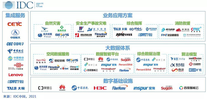 全棧技術與運營服務是目前核心玩家的主打方向。突出自身技術與市場能力優(yōu)勢的同時,從“大應急”體系建設的視角切入,囊括應急管理全業(yè)務鏈,構建“產學研用運”一體化服務新模式。