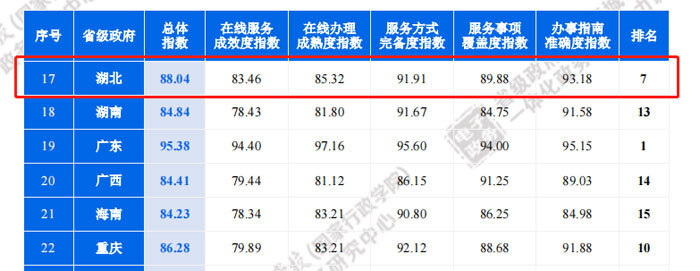 近日,中央黨校(國(guó)家行政學(xué)院)電子政務(wù)研究中心發(fā)布《2020年省級(jí)政府和重點(diǎn)城市網(wǎng)上政務(wù)服務(wù)能力(政務(wù)服務(wù)“好差評(píng)”)調(diào)查評(píng)估報(bào)告》(下稱《評(píng)估報(bào)告》),湖北省以88.04總體指數(shù)位列全國(guó)第7,相較去年提升1名,居于華中地區(qū)三省之首,成功實(shí)現(xiàn)“保位進(jìn)位”目標(biāo)。