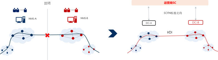 一方面,在設(shè)備層面通過(guò)標(biāo)準(zhǔn)化的IrDI接口,可實(shí)現(xiàn)與異廠家網(wǎng)絡(luò)間ODUk/VC/PKT業(yè)務(wù)的NNI互通,以及業(yè)務(wù)接口、時(shí)隙、保護(hù)、OAM的跨廠家部署。在本次互通測(cè)試中,已得到充分驗(yàn)證。
