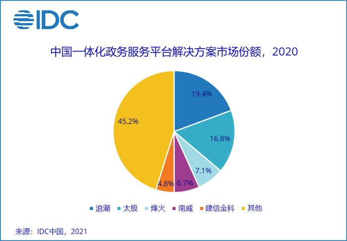 近日,權(quán)威咨詢(xún)機(jī)構(gòu)IDC發(fā)布了《中國(guó)一體化政務(wù)服務(wù)平臺(tái)解決方案市場(chǎng)廠商份額,2020》。報(bào)告顯示:2020年,中國(guó)一體化政務(wù)服務(wù)平臺(tái)解決方案市場(chǎng)份額高達(dá)57.83億元,年度同比增長(zhǎng)29.2%。其中,烽火憑借優(yōu)異的市場(chǎng)表現(xiàn)位列前三甲,在數(shù)字政府建設(shè)領(lǐng)域再創(chuàng)新高。