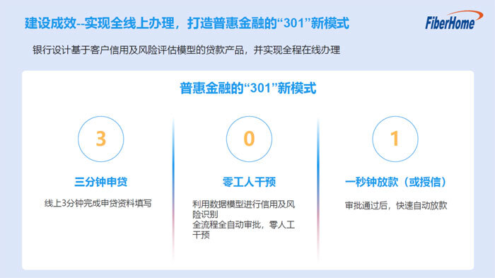 金融機構(gòu)設(shè)計基于客戶信用的貸款產(chǎn)品,做到發(fā)放貸款時有的放矢,形成良好的企業(yè)守信用、銀行敢放貸、信貸無壞賬的良性循環(huán),破解融資難、融資貴的痛點,實現(xiàn)全程在線辦理,試點打造301模式——“三分鐘申貸、零工人干預(yù)、一秒鐘放款(或授信)”。