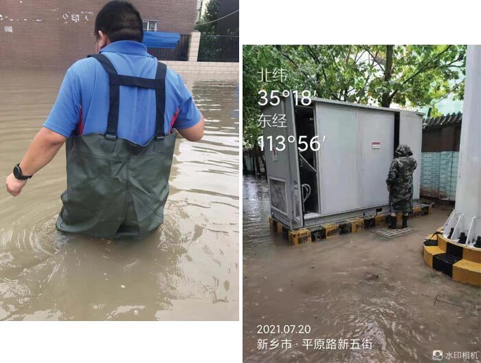 面對突破歷史極值的強降雨,光纜受損、電力中斷、機房漏水,運營商網絡服務受到了大面積影響。烽火工程師分赴河南省內各個地市進行保障工作,許多站點水深處已經及腰,工程師們涉水趕往現場,協(xié)助運營商搶救泡水設備、檢查通信線路、修復漏水滲水情況、進行應急發(fā)電,爭分奪秒保障通信。