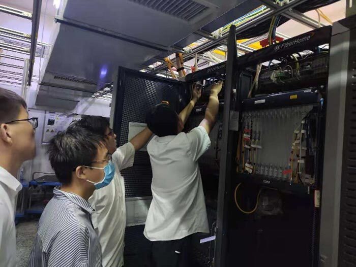 在鄭州,城區(qū)內澇、機房斷電,在電力搶修車無法及時駛達現場的情況下,烽火積極進行加電前的準備工作,清洗板卡、烘干,確保電力送達時能夠第一時間安全恢復。通過各方協(xié)作,城區(qū)主要干線設備在22日全部完成加電,設備運行正常。