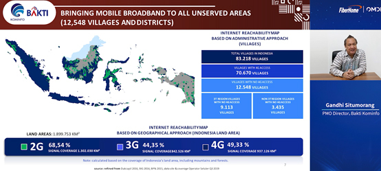 FiberHome長期服務(wù)于印尼通信網(wǎng)絡(luò)建設(shè),目前正在協(xié)助印尼通信部完成邊遠(yuǎn)地區(qū)移動覆蓋網(wǎng)絡(luò)。印尼通信部4G USO項(xiàng)目PMO總監(jiān),Gandhi Situmorang帶來了以《彌合數(shù)字鴻溝》為主題的演講,他指出,“FiberHome與印尼通信部簽署的4G USO項(xiàng)目,將助力印尼在2022年實(shí)現(xiàn)全境信號覆蓋。這極大的改善了印尼網(wǎng)絡(luò)狀況,也為未來向5G網(wǎng)絡(luò)迭代打下基礎(chǔ)。”