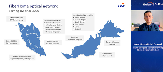 論壇還邀請到了來自馬來西亞電信(TM)網(wǎng)絡(luò)規(guī)劃專家,Mohd Mizam Mohd Zawawi先生,分享關(guān)于《TM面向5G時(shí)代的下一代傳輸網(wǎng)絡(luò)》。他提到,“自2009年以來,F(xiàn)iberHome 一直為馬電服務(wù),助力其建設(shè)傳輸網(wǎng)絡(luò)。TM計(jì)劃于2021年11月首次商用5G部署,并將逐步展開全國5G建設(shè)” 。