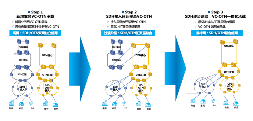 充分發(fā)揮VC-OTN大帶寬和SDH廣連接的優(yōu)勢,實現高價值專線承載能力平滑升級