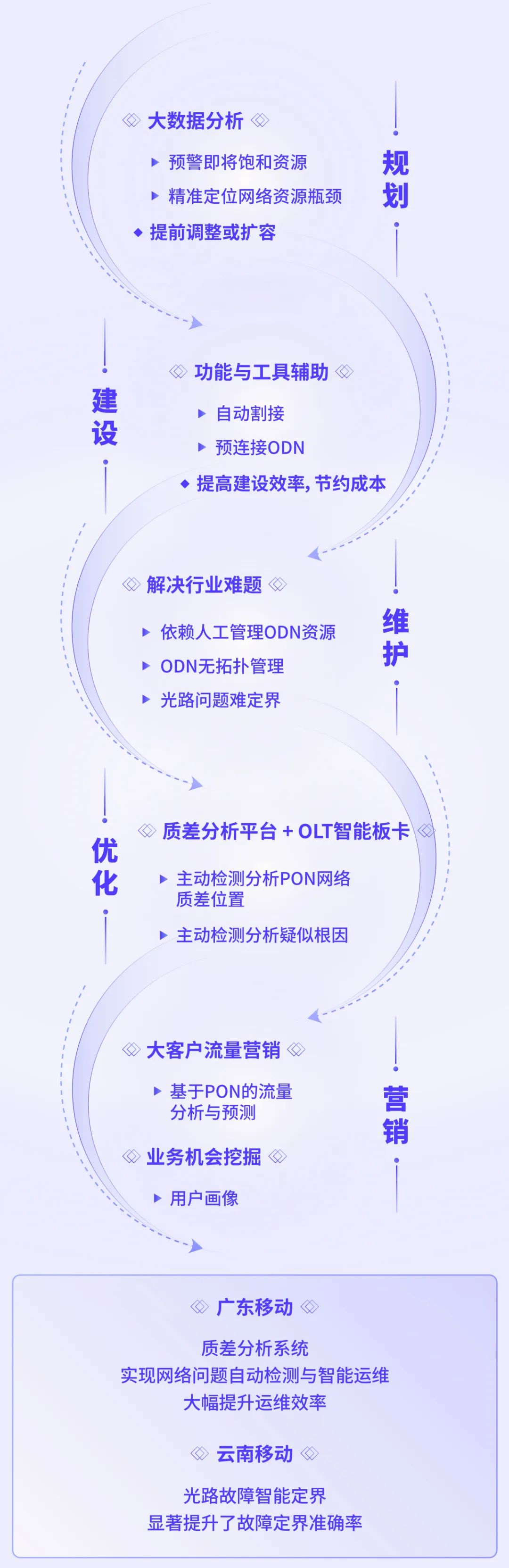 隨著寬帶網(wǎng)絡的全面普及和寬帶接入技術的發(fā)展,接入網(wǎng)走向了千兆光接入時代。家寬業(yè)務逐步向高品質(zhì)和個性化方向發(fā)展,對網(wǎng)絡質(zhì)量和體驗提出了更高要求。構建自動化、智能化的全光接入網(wǎng),加速實現(xiàn)網(wǎng)絡自智,是滿足數(shù)字化發(fā)展對網(wǎng)絡需求的重要方式。