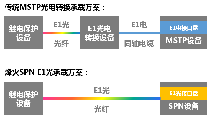 繼電保護(hù)業(yè)務(wù)對于電網(wǎng)的發(fā)、輸、變、配及重要用電設(shè)備的穩(wěn)定安全運(yùn)行至關(guān)重要,但是傳統(tǒng)繼保業(yè)務(wù)傳輸時需經(jīng)過光電轉(zhuǎn)換設(shè)備,將E1光信號轉(zhuǎn)換為E1電信號與MSTP設(shè)備對接,光電轉(zhuǎn)換的過程需要額外采購光電轉(zhuǎn)換設(shè)備,且會導(dǎo)致繼保業(yè)務(wù)因?yàn)榉侄蔚墓饫w、電纜轉(zhuǎn)接過程增加故障發(fā)生率。烽火通信SPN設(shè)備在滿足電力通信網(wǎng)超低時延、海量連接、安全可靠、綠色低碳、智能控制五個維度智能電力通信網(wǎng)需求的同時,還開發(fā)了8路光口的E1光接口盤,為繼電保護(hù)業(yè)務(wù)承載貢獻(xiàn)三大價值: