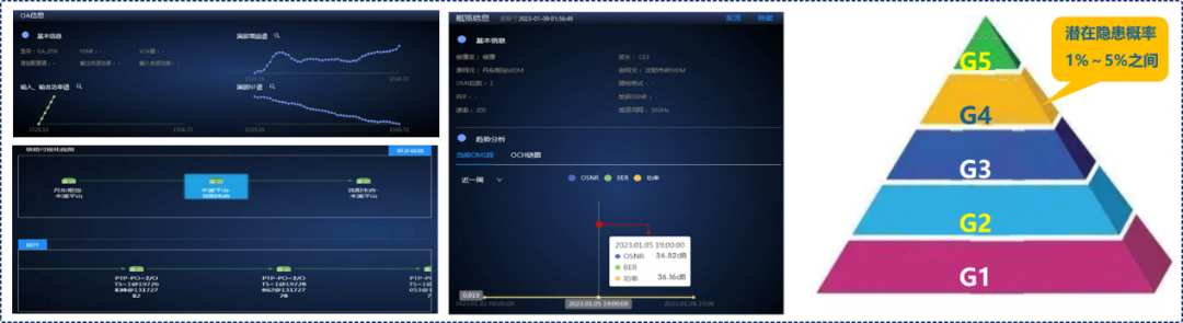 設(shè)計(jì)新型五級(jí)量化分類(lèi)方案,細(xì)粒度量化評(píng)定光網(wǎng)傳輸質(zhì)量潛在隱患風(fēng)險(xiǎn)概率,支持光網(wǎng)傳輸質(zhì)量評(píng)估指標(biāo)多維度可視化呈現(xiàn),實(shí)現(xiàn)時(shí)序回放和關(guān)聯(lián)預(yù)測(cè)功能,為自智網(wǎng)絡(luò)L4/L5能力實(shí)現(xiàn)提供決策基礎(chǔ)。