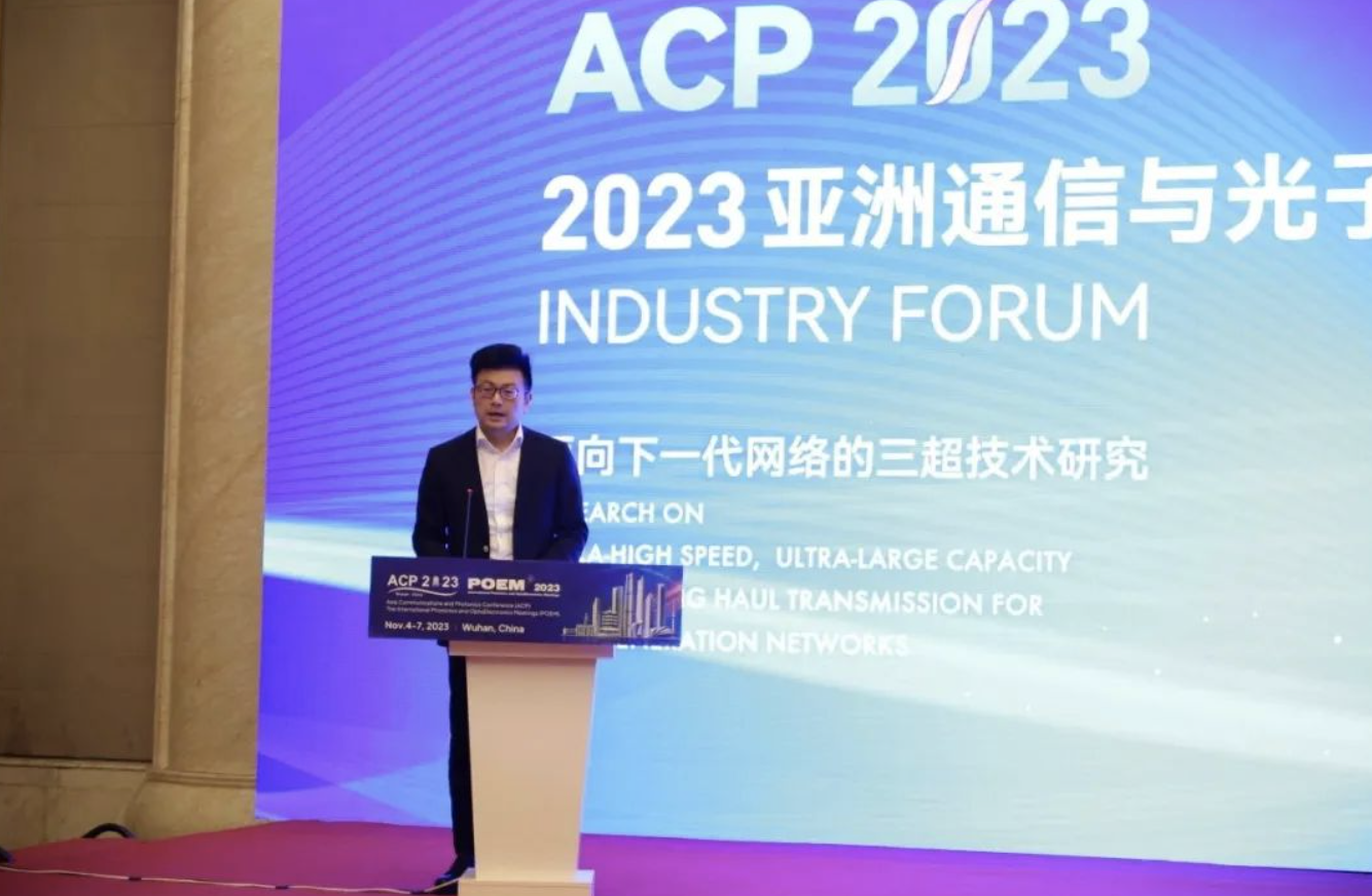 11月4日,由烽火通信承辦的2023 ACP亞洲通信與光子學(xué)大會工業(yè)論壇在武漢萬達(dá)瑞華酒店成功舉辦。本次論壇邀請到國家信息光電子創(chuàng)新中心、中國移動研究院等科研院所相關(guān)領(lǐng)域核心專家及國內(nèi)外高校教授,共同探討下一代光網(wǎng)絡(luò)在超高速率、超大容量、超長距離等方面的研究和應(yīng)用。會上,烽火通信與中國移動、國家信息光電子創(chuàng)新中心共同發(fā)布“業(yè)界首個單波Tbit級S+C+L擴(kuò)展波段無拉曼輔助超大容量傳輸系統(tǒng)”,為未來光網(wǎng)持續(xù)向800G和Tbit+演進(jìn)提供了切實的理論基礎(chǔ)和可行的實踐依據(jù)。