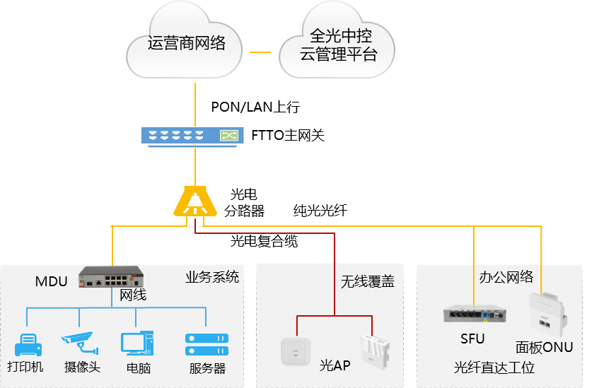 中小企業(yè)在數(shù)字化轉(zhuǎn)型過程中面臨著傳統(tǒng)組網(wǎng)方式結(jié)構(gòu)復(fù)雜、網(wǎng)絡(luò)體驗(yàn)難以保障、故障排查和維護(hù)難度高等網(wǎng)絡(luò)基礎(chǔ)薄弱難題。為聯(lián)合運(yùn)營商加速中小企業(yè)數(shù)字化升級(jí),烽火通信打造了全光極簡、全場景覆蓋、一站式施工、低碳節(jié)能的FTTR-B解決方案,依托融合OLT、路由器、交換機(jī)、AC和Portal認(rèn)證等功能的高集成度主網(wǎng)關(guān),構(gòu)建全光極簡網(wǎng)絡(luò)。主網(wǎng)關(guān)具有多類型,可滿足1-256個(gè)信息點(diǎn)接入需求,而子網(wǎng)關(guān)通過搭配吸頂式、面板式、桌面式等多形態(tài)光終端,能夠覆蓋中小微全場景。同時(shí),烽火通信具有全產(chǎn)業(yè)鏈研發(fā)生產(chǎn)優(yōu)勢,可提供FTTR-B設(shè)備、配套、線纜端到端供應(yīng),幫助客戶實(shí)現(xiàn)一站式施工和運(yùn)維。此外,無源ODN網(wǎng)絡(luò)可節(jié)省60%機(jī)房空間,全面實(shí)現(xiàn)低碳節(jié)能。