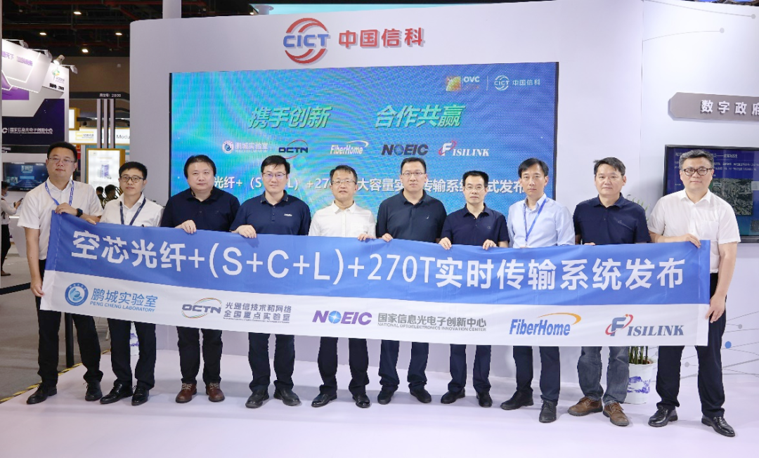 5月17日,烽火通信聯(lián)合鵬城實驗室、中國信科集團光通信系統(tǒng)和網(wǎng)絡(luò)全國重點實驗室、國家信息光電子創(chuàng)新中心及武漢飛思靈微電子技術(shù)有限公司,在中國光谷·光電子信息產(chǎn)業(yè)創(chuàng)新發(fā)展大會發(fā)布基于空芯光纖的超大容量實時傳輸系統(tǒng),實現(xiàn)了19.65Thz超寬帶S+C+L波段實時傳輸,單纖雙向同波長傳輸最大傳輸容量超270Tbit/s,單波速率最高達1.2Tbit/s。本次傳輸實驗的成功,不僅再次實現(xiàn)大容量光纖傳輸系統(tǒng)的創(chuàng)新突破,且對空芯光纖的低損耗、超低非線性及超低背向散射等特性進行了驗證,為未來800G和Tbit+系統(tǒng)與空芯光纖的結(jié)合提供了切實的理論基礎(chǔ)和可行的實踐依據(jù)。
