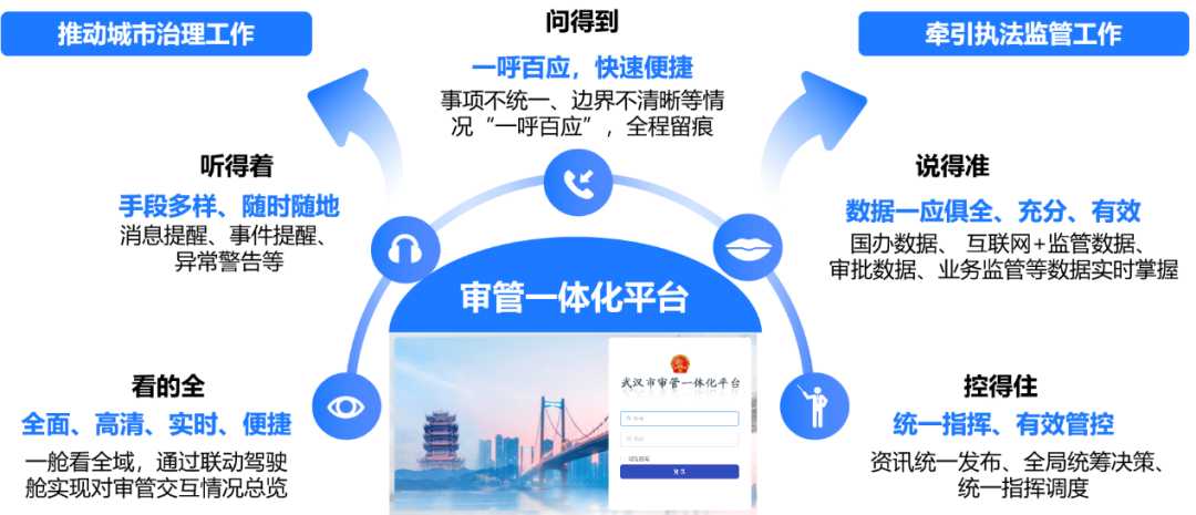 秉承“小切口、微應(yīng)用、首創(chuàng)性”的原則,烽火從簡化流程、搭建平臺、系統(tǒng)互聯(lián)、微應(yīng)用開發(fā)、機制建立五大方面,輔助武漢市實現(xiàn)審批與監(jiān)管的無縫銜接。同時,通過搭建審批與監(jiān)管一體化平臺,成功打通10個市直部門的監(jiān)管執(zhí)法系統(tǒng),實現(xiàn)信息的實時共享,讓審批流程更加集中和簡化,監(jiān)管更加精準和高效。