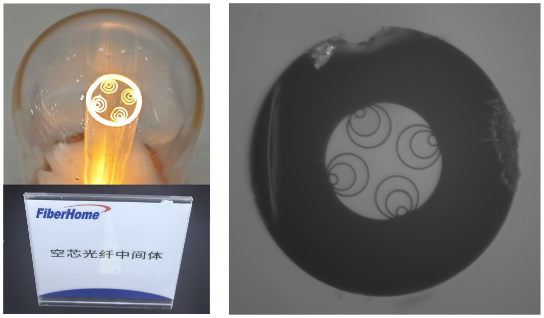 烽火通信研制的空芯光纖 中間體和光纖端面結(jié)構(gòu)示意圖
