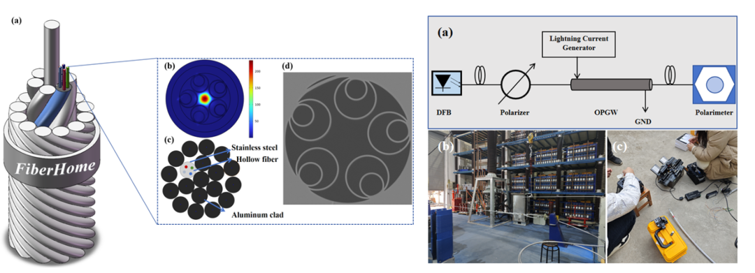 通過(guò)特殊的空芯光纖光纜結(jié)構(gòu)仿真、設(shè)計(jì)與雷擊實(shí)驗(yàn)平臺(tái)搭建驗(yàn)證,將偏振態(tài)旋轉(zhuǎn)速度(RSOP)波動(dòng)范圍穩(wěn)定在0.1~0.2krad/p,較G.652.D光纖(1-15krad/s)降低2個(gè)數(shù)量級(jí),為OPGW光纜選型提供了量化依據(jù),更為反諧振空芯光纖替代傳統(tǒng)OPGW光纜中的實(shí)芯光纖提供了可行性,尤其為雷電多發(fā)區(qū)域的電力通信網(wǎng)絡(luò)提供參考。