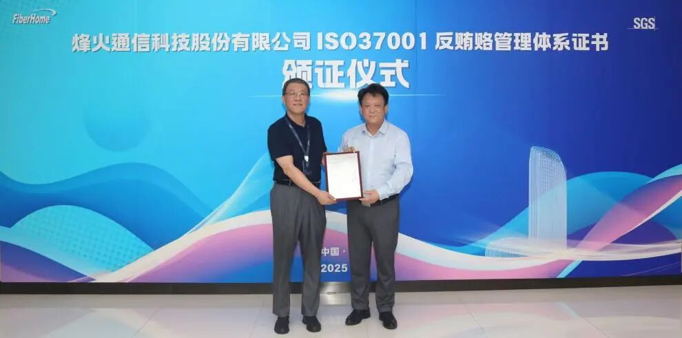 8月27日,國際公認的測試、檢驗和認證機構(gòu)SGS向烽火通信正式頒發(fā)ISO37001反賄賂管理體系認證證書,這一榮譽標志著烽火通信憑借前瞻性戰(zhàn)略眼光,在反賄賂合規(guī)建設上達到國際標準,成為業(yè)內(nèi)為數(shù)不多獲此認證的企業(yè)。