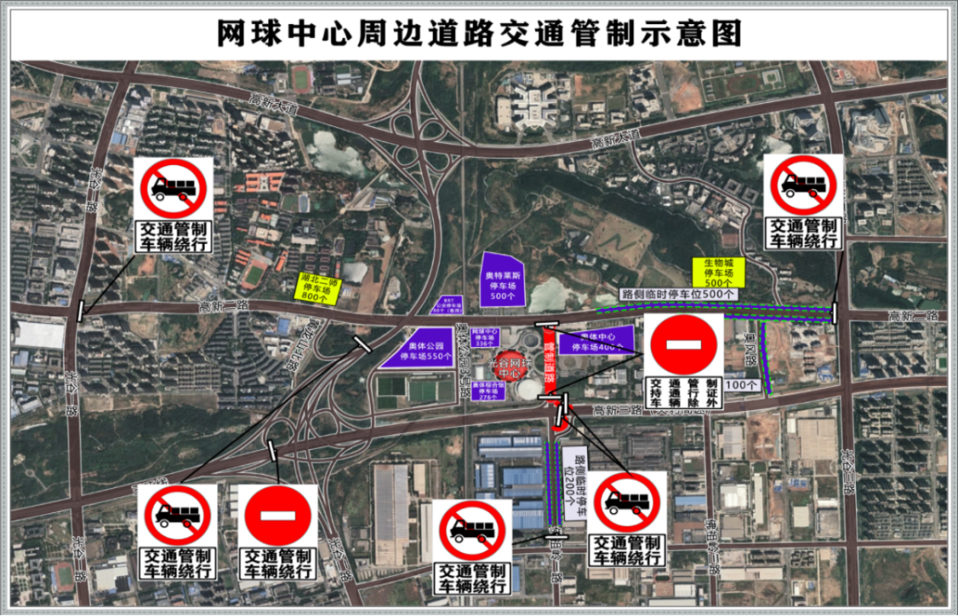 為確保觀眾及車輛安全有序集散,每場活動開始前1小時至工作結(jié)束,對網(wǎng)球中心周邊道路采取以下臨時性交通限制措施: