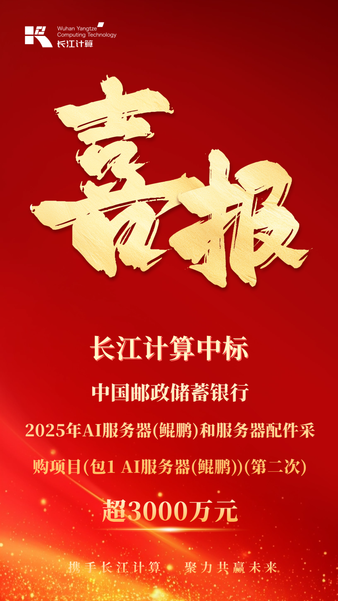 日前,中國郵政儲蓄銀行2025年AI服務器(鯤鵬)和服務器配件采購項目(包1 AI服務器(鯤鵬))(第二次)結果正式揭曉,烽火通信旗下長江計算憑借硬核技術實力、高可靠產品性能及深度貼合金融場景的解決方案,以第二份額成功中標,中標金額超3000萬元。此次中標既是頭部金融機構對長江計算綜合實力的高度認可,同時也標志著公司在金融AI算力領域的戰(zhàn)略地位得到進一步鞏固。