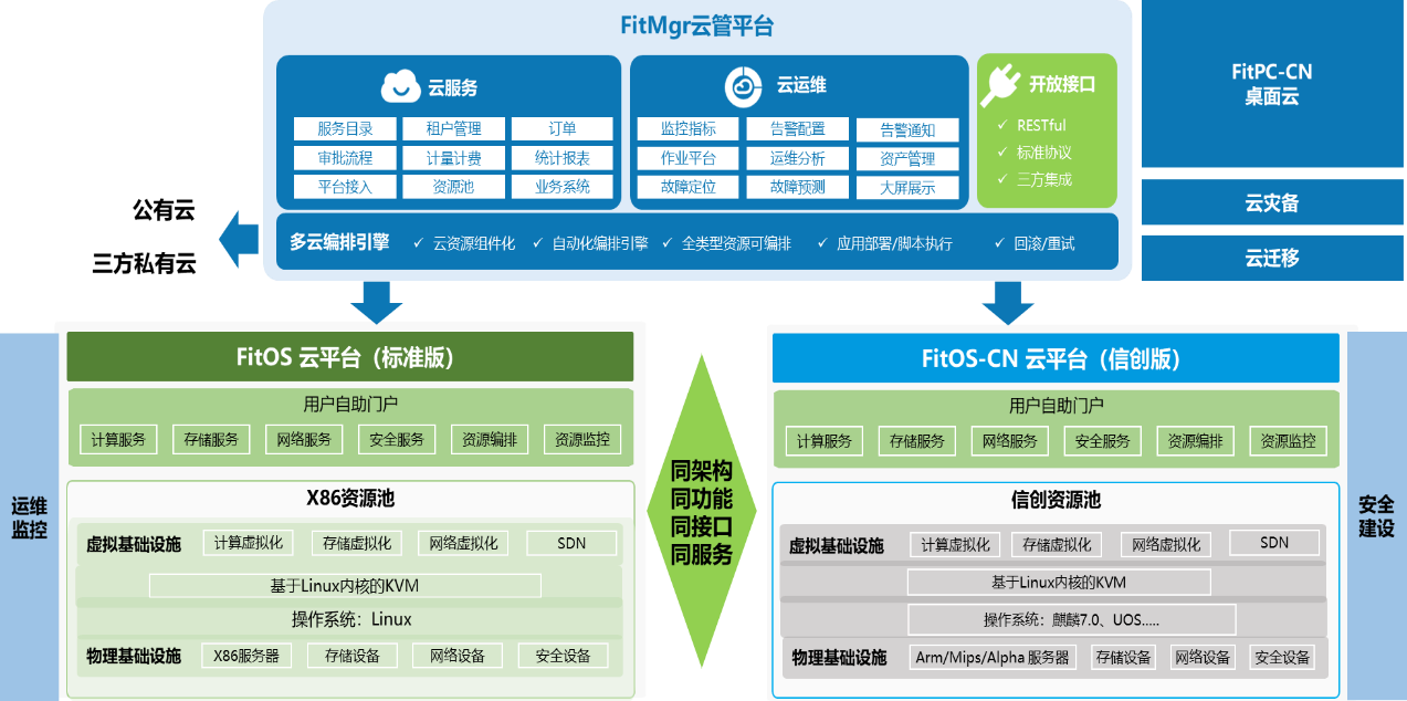 烽火信創(chuàng)云解決方案基于國(guó)產(chǎn)混合IT架構(gòu)云化,包括數(shù)據(jù)中心云化和桌面云化產(chǎn)品。向下兼容主流國(guó)產(chǎn)處理器、服務(wù)器硬件,支持開通基于主流國(guó)產(chǎn)操作系統(tǒng)的裸金屬、虛擬機(jī)和容器等類型云資源,利用健全生態(tài)適配,提供基于行業(yè)信創(chuàng)云解決方案。
